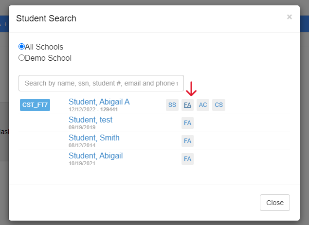 - You can locate the FA Status Boxes on the student's profile page by accessing the FA filtered view.