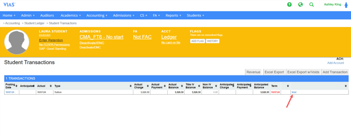 Using the Void function on a Student Ledger
